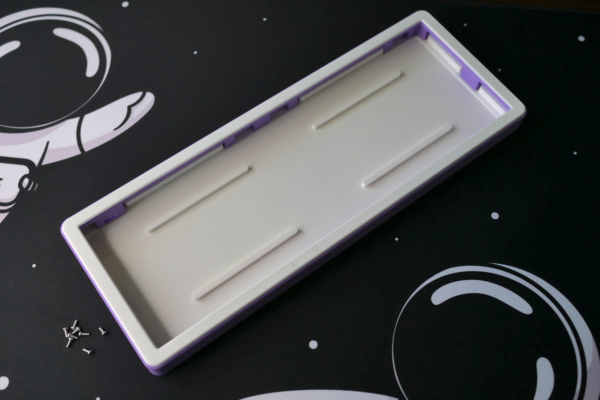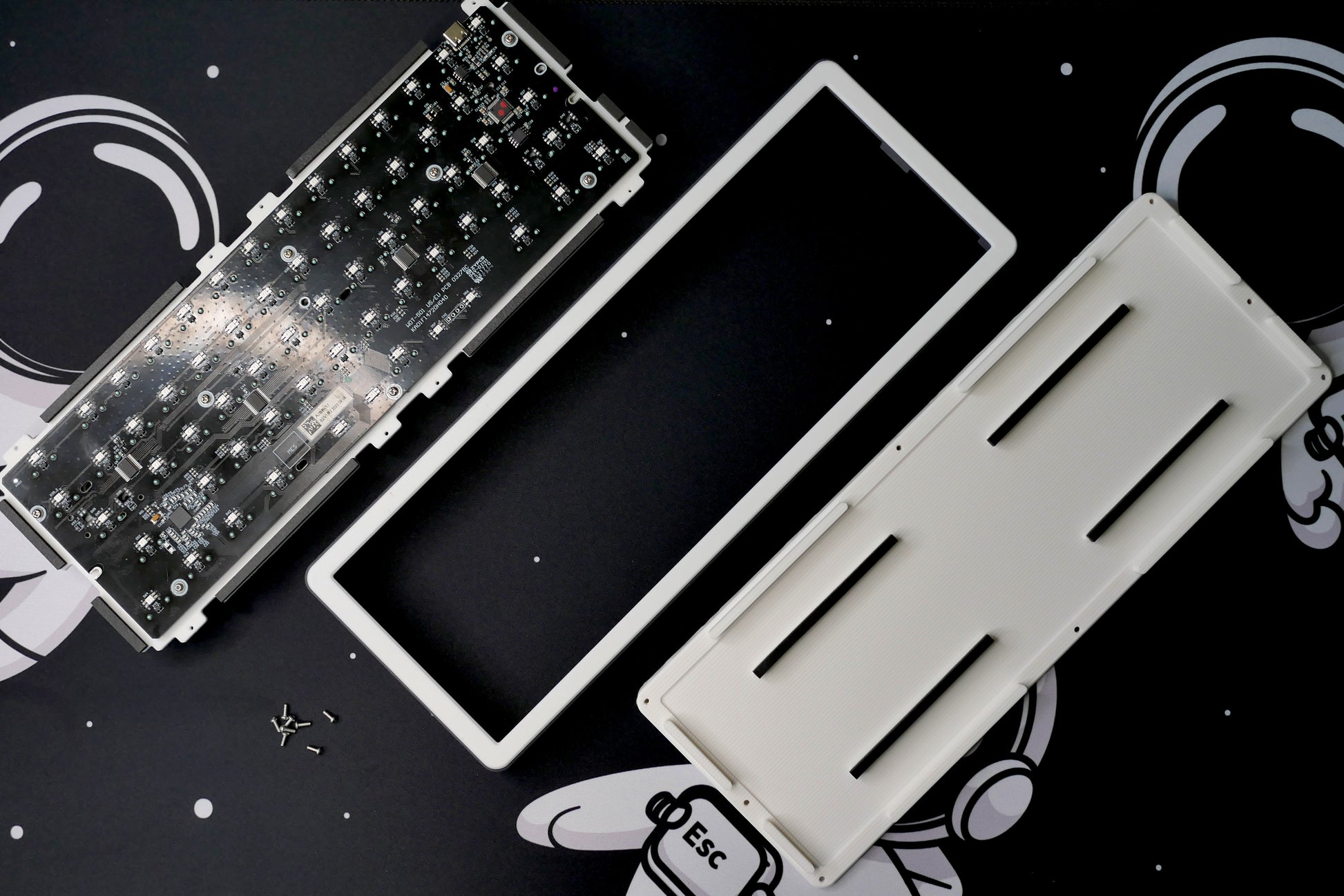 * The original plate screws from your Wooting 60HE will be reused to mount the PRISM-60 plate.
